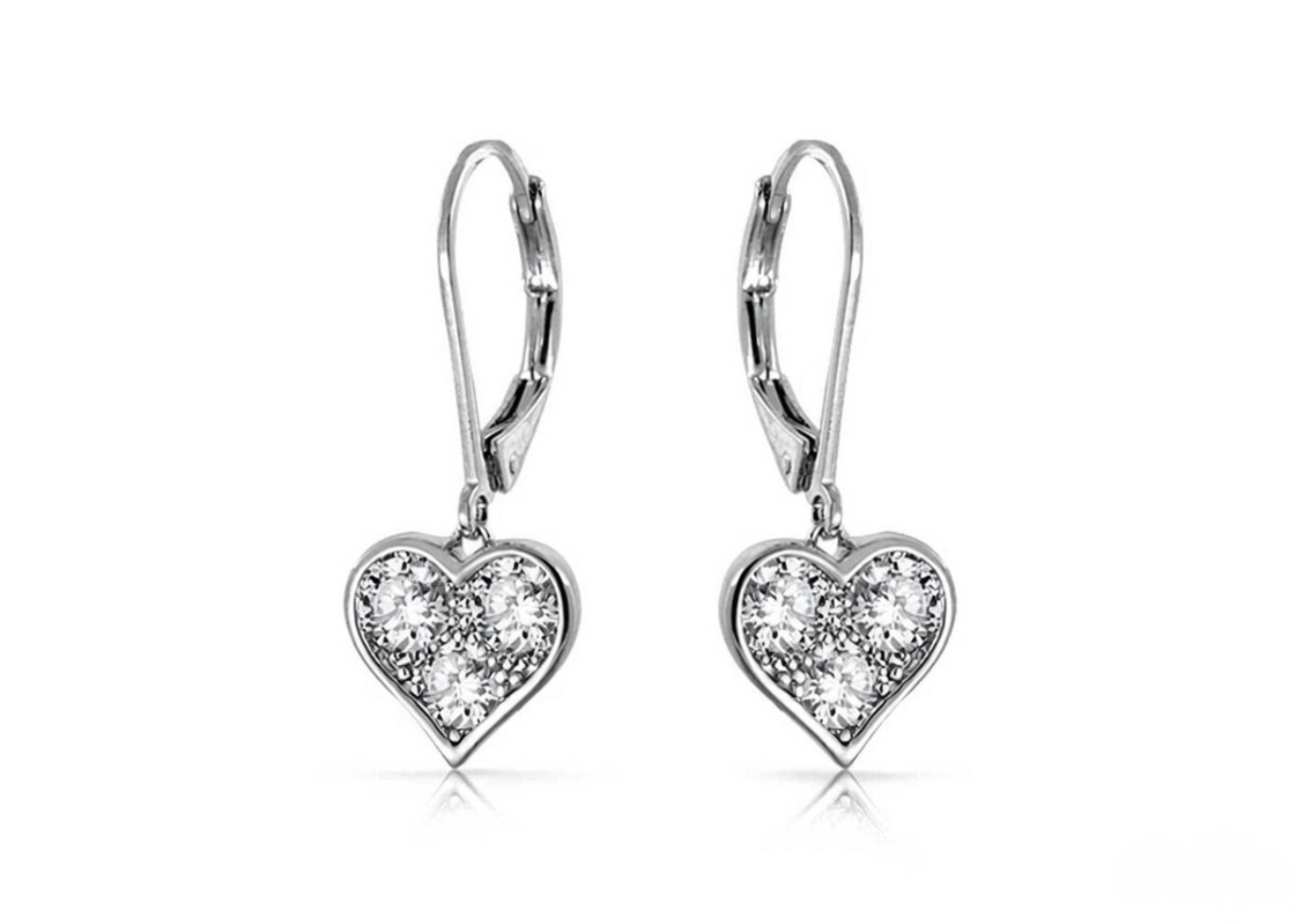 Our CZ Heart Dangle Earrings is made with solid durable and secure lever-back closure with 14 kt Solid Rhodium Plated and finest Quality