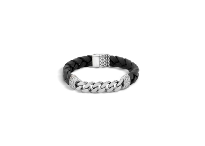 Rhodium Plated Mens Curb Leather ID Bracelet, with 10 mm width, weighing approx 27.21 grams, Available in sizes from 8" Inches to 10.5" Inches, with High Polish Finish