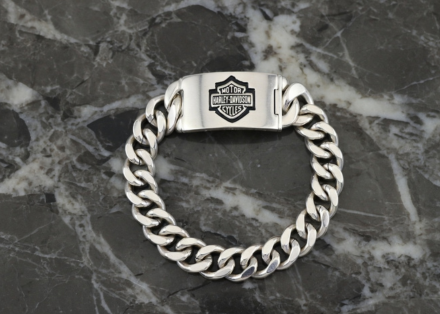 Rhodium Plated Mens Harley Davidson ID Bracelet