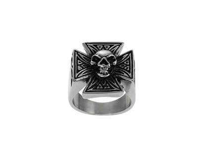 Rhodium Plated Skull Mens Ring, weighing approx 17.49 grams, Available in sizes US$ 8 to US$ 14, with High Polish Finish