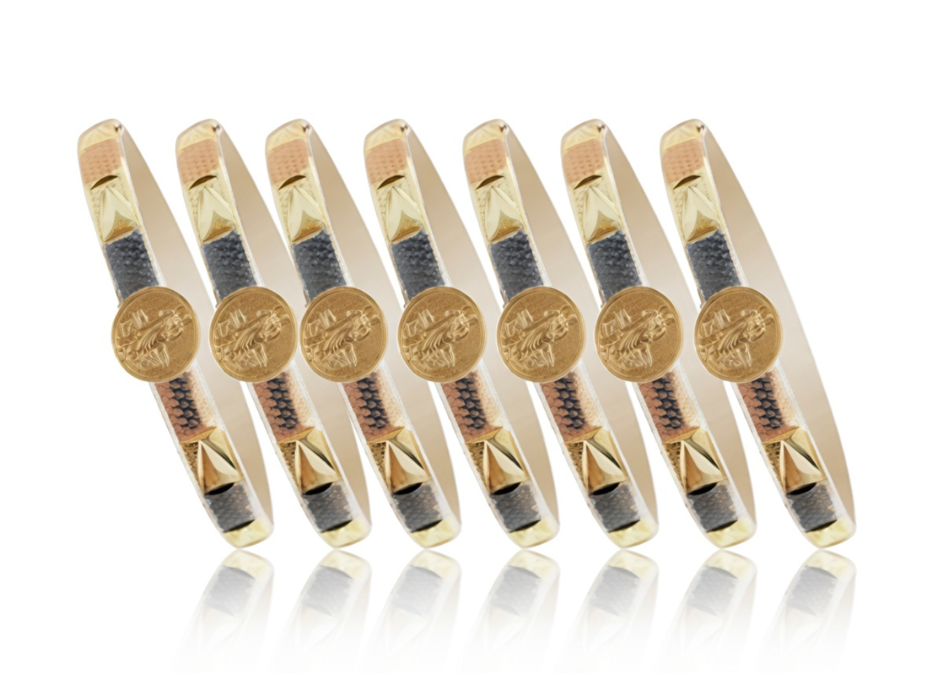 Saint Jude Bangle with Three Tone Plating measuring 6.50 mm in width and 15 mm of Saint Jude Round in the centre weighing approx 10.8 grams with High Polish Finish