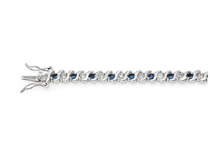 Silver Plated CZ Studded Blue Sapphire Tennis Bracelet,with 6mm width,weighing approx 9.16 grams,Available in sizes from 6" Inches to 10.5" Inches,with High Polish Finish