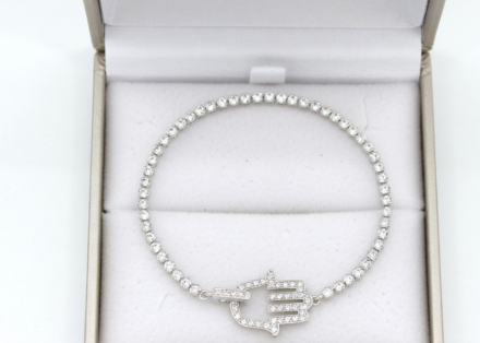 Silver Plated CZ Studded Hamsa Bracelet, with 20 mm width, weighing approx 11.55 grams, Available in sizes from 6" Inches to 8.5" Inches, with High Polish Finish