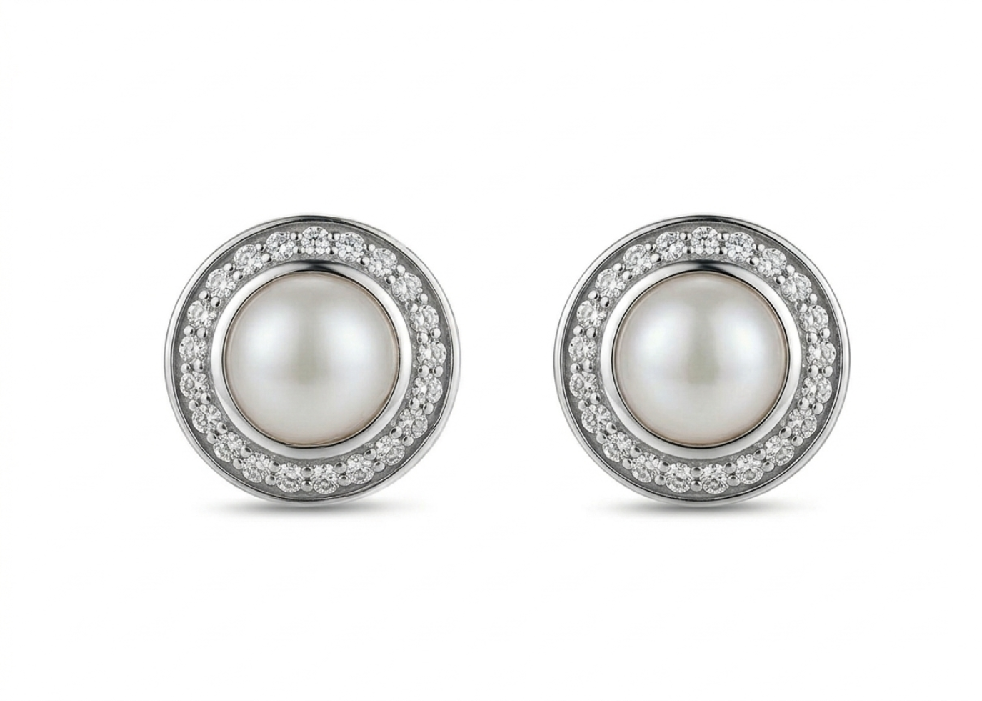 Silver Plated CZ Studded Pearl Set Stud Earring, with 17 MM High Polish Finish, set in 14 KT, weighing approx 3.80 grams