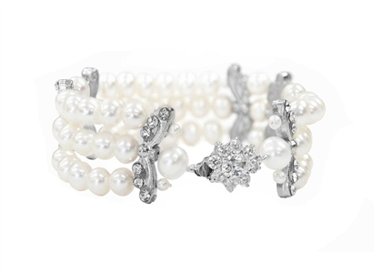 Silver Plated CZ Studded Womens Pearl Bracelet