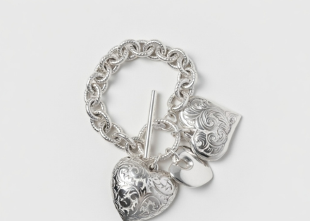 Silver Plated Heart Charm Toggle Bracelet, weighing approx 32.87 grams, with High Polish Finish