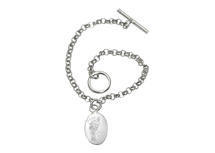 Silver Plated Mens Footprint Toggle Charm Bracelet
