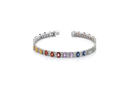 Silver Plated Multicolored stone Tennis Bracelet, with 5 mm width, weighing approx 32.86 grams, Available in sizes from 6" Inches to 10.5" Inches, with High Polish Finish
