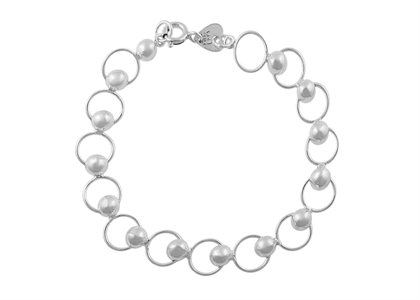 Silver Plated Womens Pearl Bracelet, with 15 mm width, weighing approx 12.96 grams, Available in sizes from 6" Inches to 8.5" Inches, with High Polish Finish