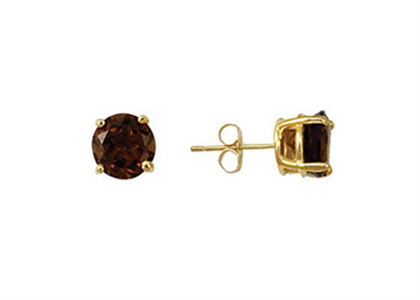 Solitaire Gemstone Stud Earring, measuring 8 mm in length, set with 8 mm brown round cut stone, weighing approx 3.56 grams, with High Polish Finish