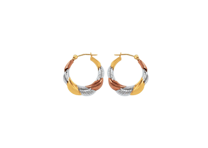 Exclusionary High Polish 10 mm 14kt 3tone Gold Plated Basket Hoop Earrings in Size ,Approx 8.9 grams