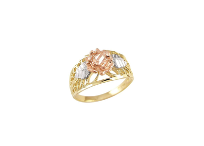 Three Tone Plated Filigree Flower Ring with 15 MM, Available in sizes US# 4 to US# 8