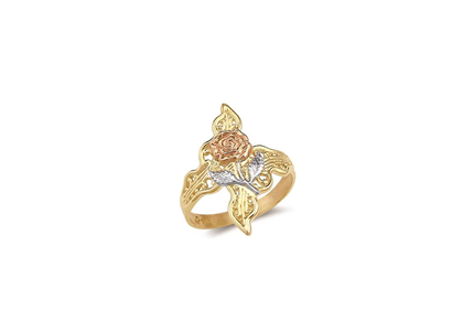 Three Tone Plated Filigree Flower Ring with 22 MM width, Available in sizes US# 4 to US# 8