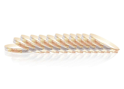 Three Tone Plated side veni Bangle of 6 mm 14 kt 3 Tone Gold Plated Bangle in ALL SIZE # 1 TO # 8 of Approx 13.5 grams with High Polish finish Sold as a set of 12 pc