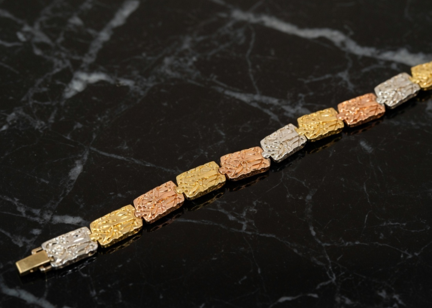 Three Tone Plated Womens Bracelet, with 10 mm width, weighing approx 11.66 grams, Available in sizes from 6 inches to 8.5 inches, With High Polish finish