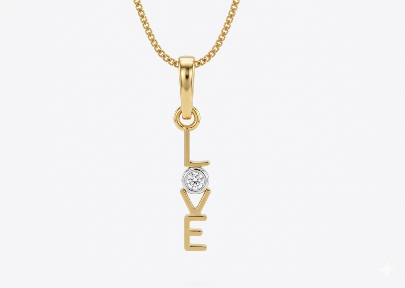 Two Tone Plated Bezel Set Love Pendant with 25 MM Length, Weighing pprox 4.64 Grams with High Polish Finish