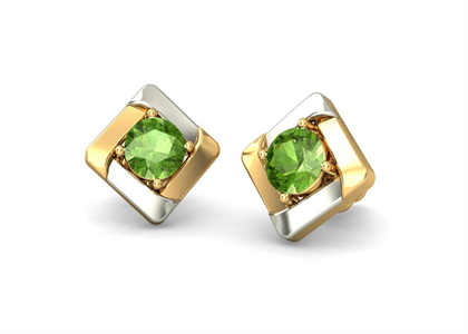 Two Tone Plated Gemstone Solitaire Stud Earring, with 8 mm length, weighing approx 2.91 grams, with High Polish Finish